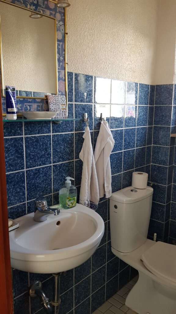 Im Erdgeschoss befindet sich neben dem Kinderzimmer das größere Badezimmer, ausgestattet mit 2 Waschbecken, 1 Badewanne und 1 Dusche. Im Flur befindet sich zudem ein Gästebad mit WC und Waschbecken. Beide Bäder sind mit Fenstern ausgestattet und somit hell und freundlich.